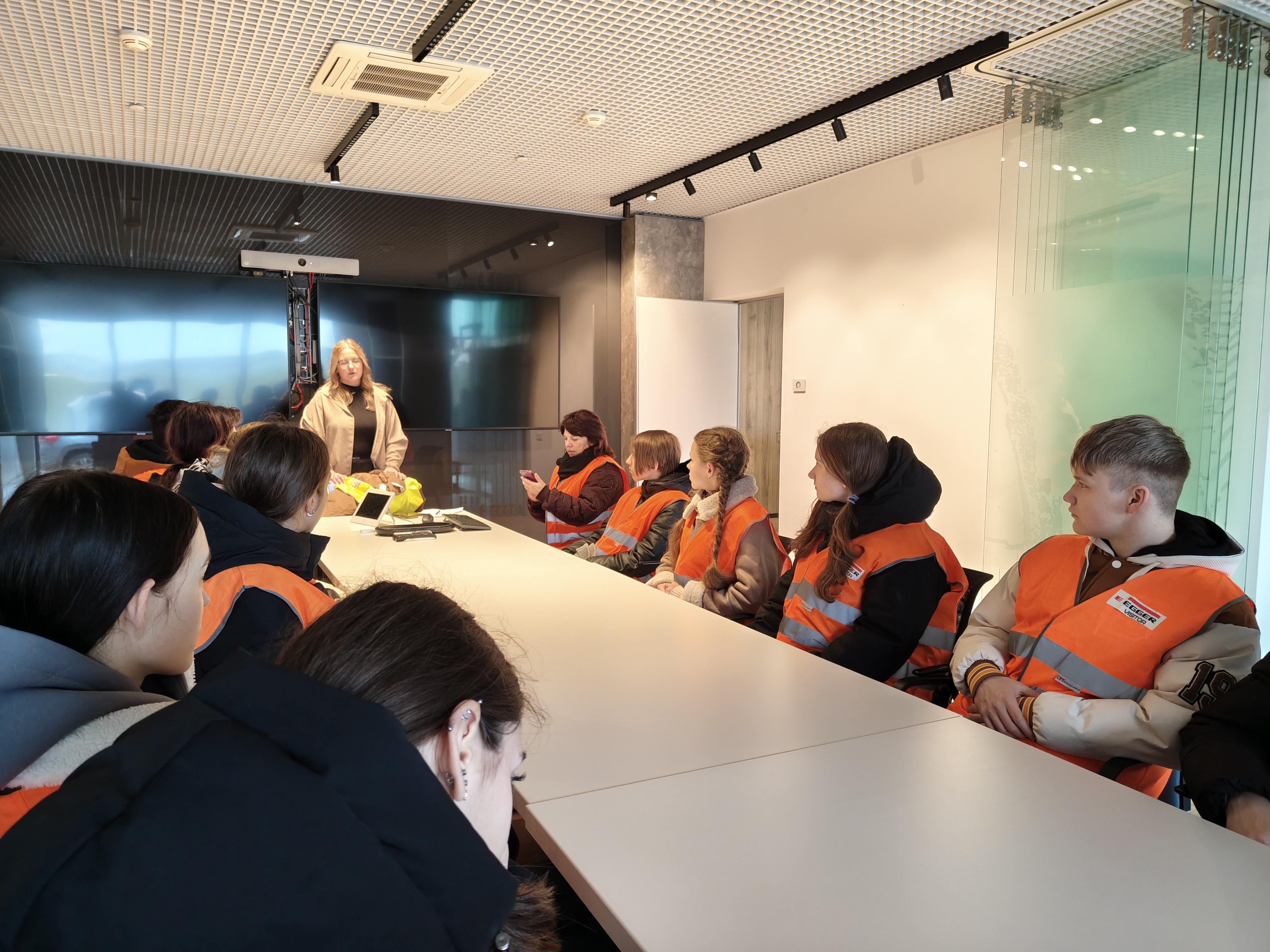 Специалист по подбору персонала – Головкина Марина, рассказала ребятам историю создания компании, познакомила с правилами, ценностями, особенностями корпоративной культуры и принципами работы предприятия, объемами производства, количеством сотрудников. Ребята с большим интересом восприняли информацию об условиях труда сотрудников завода, организованных по европейским стандартам, а также уровне заработной платы на предприятии. В ходе экскурсии рассказали о том, каким образом из древесины создаются различные виды плит - ДСП, МДФ, ХДФ и др. Ребята узнали о том, как происходит сушка, прессование и обработка древесины, а также какие процессы и контрольные мероприятия проводятся для обеспечения высокого качества продукции. Школьникам были показаны все этапы производства и контроля качества, в том числе и готовой продукции, упаковка и маркировка, а также условия хранения, доставки, обслуживания и информационной поддержки потребителей. Экскурсия на завод «ЭГГЕР ДРЕВПРОДУКТ ГАГАРИН» - это отличная возможность познакомиться с процессом производства древесных плит, ребята получили уникальную возможность увидеть все стадии производства, познакомиться с современными технологиями и оборудованием, которые используются на предприятии. Завод поражает своими размерами и уровнем автоматизации